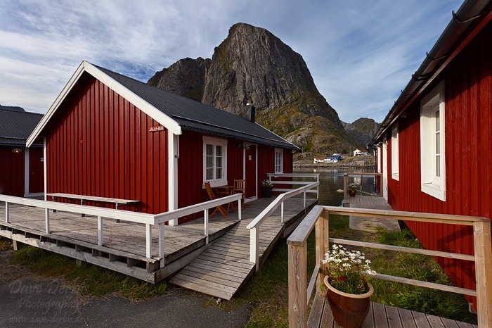 Eliassen Rorbuer, Lofoten Islands—Red fisherman’s cabins on fjords perfect golden hour frame